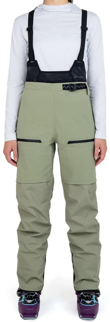 Colorado-born Raide is a relative newcomer to the ski apparel market, but they hit the ground running with their TourTech Bibs. While many of the bibs on this list make it on for their versatility, the TourTech does one thing really well: spring skimo-ing. The main event is the bib’s half-softshell, half-hardshell construction. You heard us right: While most backcountry bibs just use softshell on the upper (the part of the bib least exposed to the elements), the TourTech has softshell fabric from the knees up, and hardshell on just the bottom. The result is a highly mobile, lightweight, and breathable bib that excels during high-output activities in mild conditions. Tack on a minimalist feature set—including side vents, two thigh pockets, an integrated belt—and a mesh upper, and you get the ideal bib for mountain ski tours in April and May.