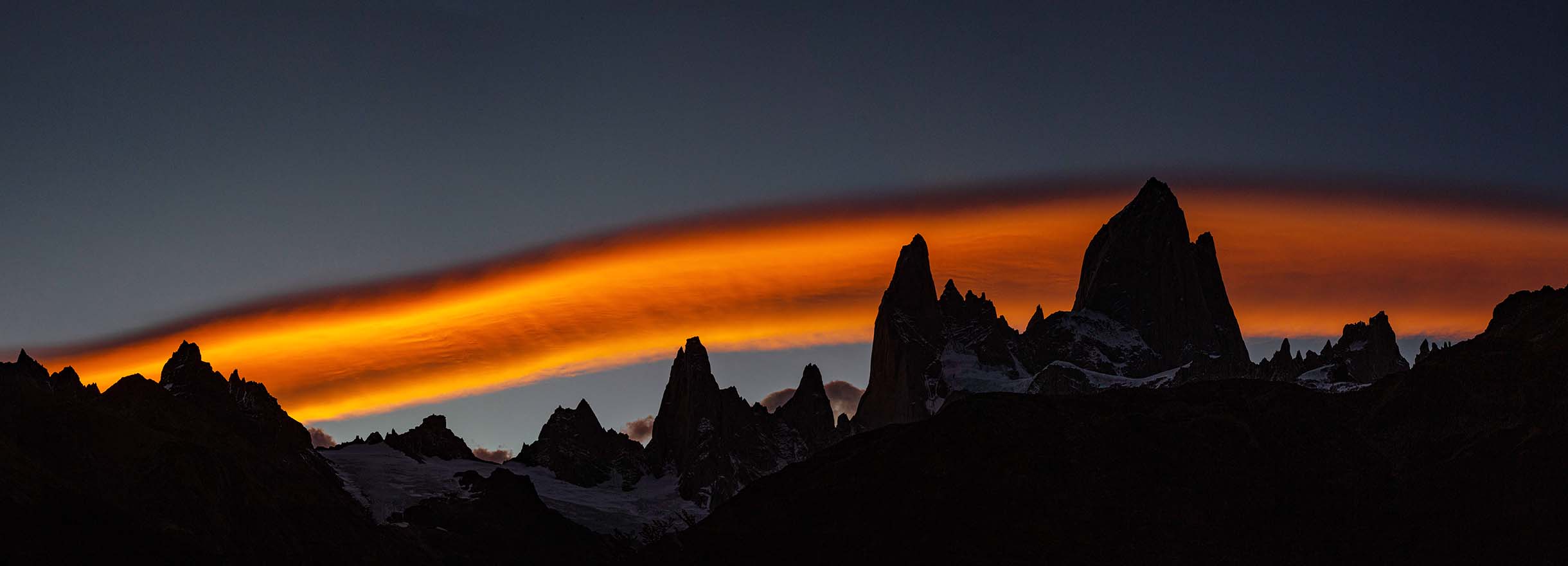 It took a solid two days of travel to get from North America to El Chaltén, including an overnight flight to Buenos Aires, a connecting leg to El Calafate, and a three-hour taxi through the windswept steppe of Southern Patagonia. Once on the road outside of El Calafate, the remoteness of the area was palpable: Desert shrubs dotted the landscape as far as the eye could see; the odd grazing guanaco offered a sense of scale. It’s not a scene in which you’d expect to find some of the world’s most spectacular mountains, but Patagonia is, after all, a land of extremes. At 9 p.m., with the evening sun lingering lazily above the horizon, the taxi rounded a bend and we caught our first glimpse of the Chaltén massif, rising straight out of the plains. Our adventure had begun.