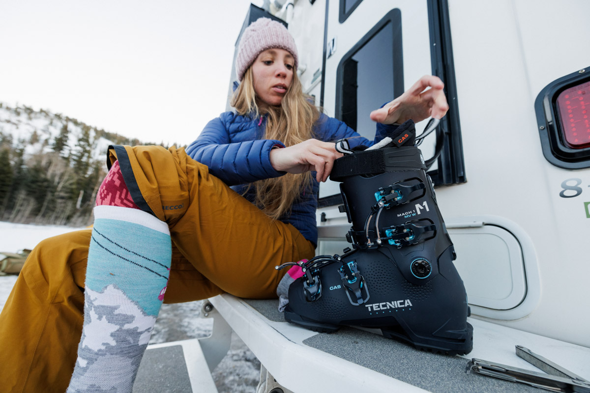 As evidenced from the list above, most boot manufacturers have a women’s-specific counterpart to their men’s or unisex boots. The most obvious difference between the two is flex: Most of the women’s models above are softer than the men’s versions, as is the case with the Tecnica Mach Sport 65 (versus the men's 80). The reason for that most closely correlates with weight, as we mentioned above. However, women’s boots also take into consideration the female anatomy, opting for lower cuffs that accommodate shorter and wider calves. And in most cases, women's ski boots are offered in smaller Mondo sizes.