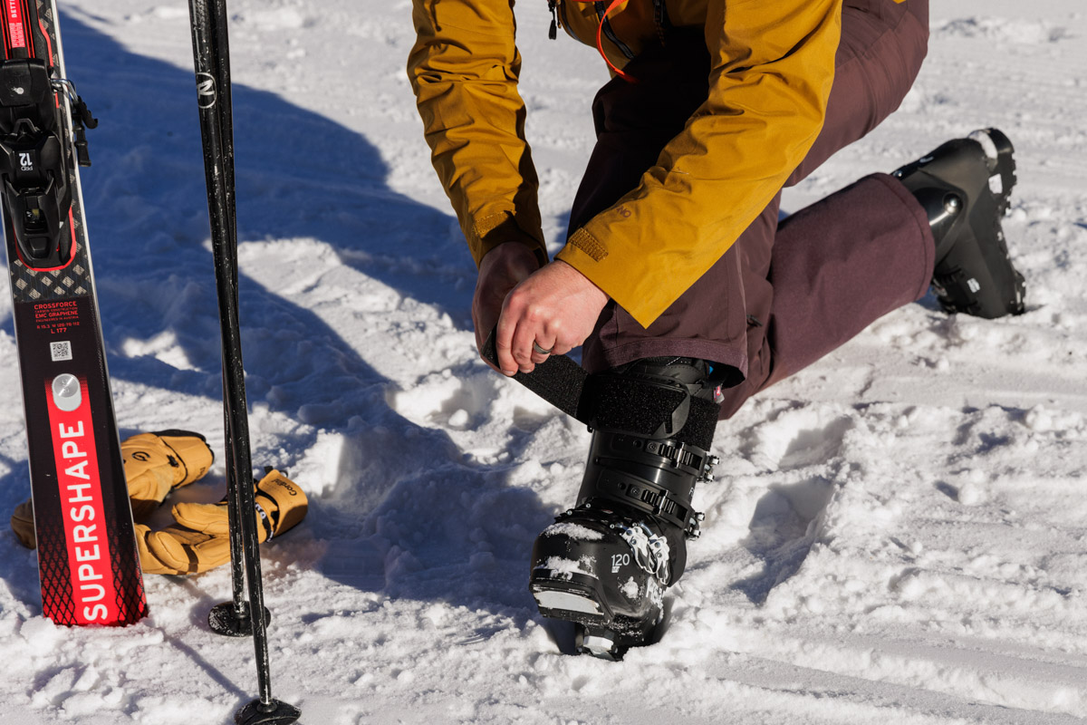 To start, it’s helpful to know that there aren’t many revolutionary buckle and strap designs in the beginner-to-intermediate category. The most noticeable difference is the number of buckles used. Some use the classic four-piece, which offers improved adjustability but is slightly more difficult to put on and take off. Others opt for two or three buckles for greater simplicity. Either option can work well for a beginner, and we’ve had success with both designs. We always recommend looking for buckles made mostly with aluminum for greater durability (plastic is cheaper but more prone to breaking). Boa closures are also becoming increasingly popular in downhill ski boots of late, but not many true beginner ski boots incorporate them. The tech also generally comes with a large price bump, so we generally don't recommend them for those who will upgrade to stiffer models after a season or two of learning.