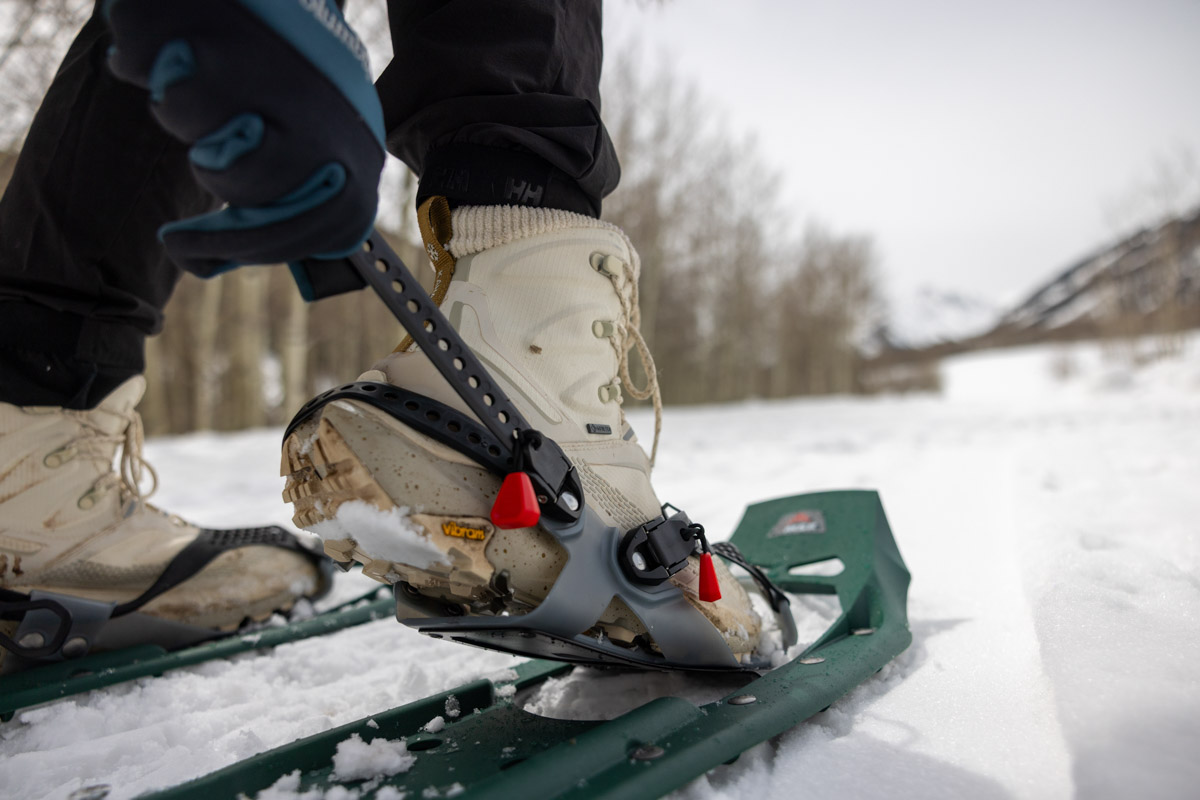 For casual snowshoeing and shorter trips, weight is not a major consideration. The truth is that many snowshoes in this category weigh around the same, and most users won’t notice much of a difference. Weight and heft start to matter a lot more as you get into backcountry snowshoeing and spending long days on the trail, but at that point, you’ll need the additional flotation and improved traction and bindings of a burlier model anyway. For example, the Tubbs Mountaineer weighs 5 pounds for the 36-inch version, but the added float and improved grip are crucial for more demanding outings and especially deep days.