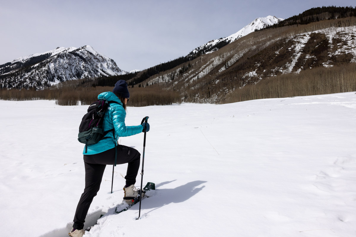 However, I had more difficulty testing these snowshoes in super soft snow. When hiking near Grand Mesa in powder, the Evo Trails struggled to stay afloat. I've successfully hiked in other MSR snowshoes in similar conditions, so I don't think this is a reflection of the build quality, but rather the length of the snowshoe. I recommend investing in the 6-inch tail extensions if you plan on hiking through soft snow or carrying a heavy load. But those sticking to established trails should have little issue with the standard length.